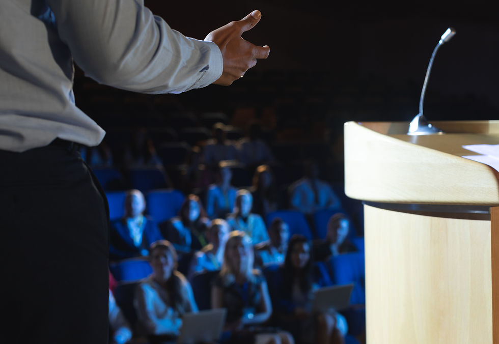 Topluluk karşısında konuşma yapan profesyoneller